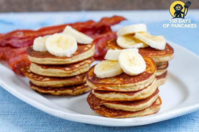 15 mins total (prep and cooking time), makes about 9 pancakes (palm size) which could serve 1 or 2 depending on what toppings you add and enjoy